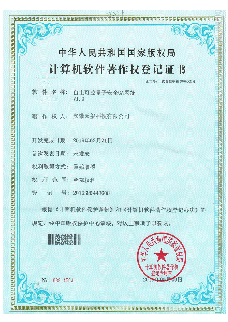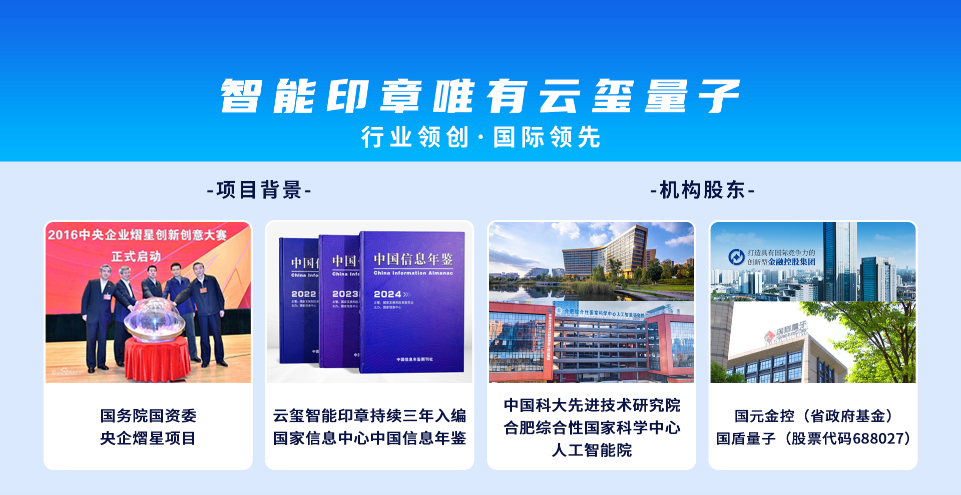 安徽云璽量子科技有限公司是合肥市量子信息產業重點企業,國家信創(chuàng)工委會成員企業,中國信創(chuàng)500強企業。主營業務包括量子安全智能印簽、量子安全智能辦公、量子安全云服務,為政企客戶提供量子安全整體解決方案。