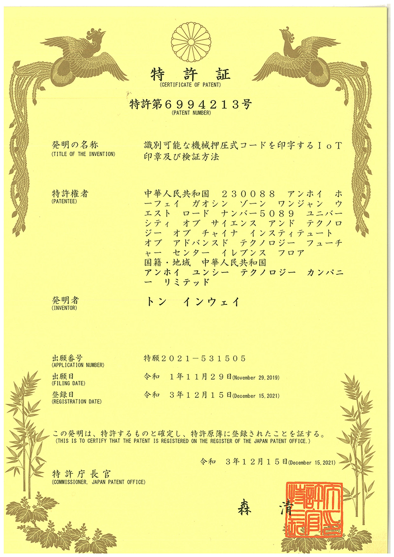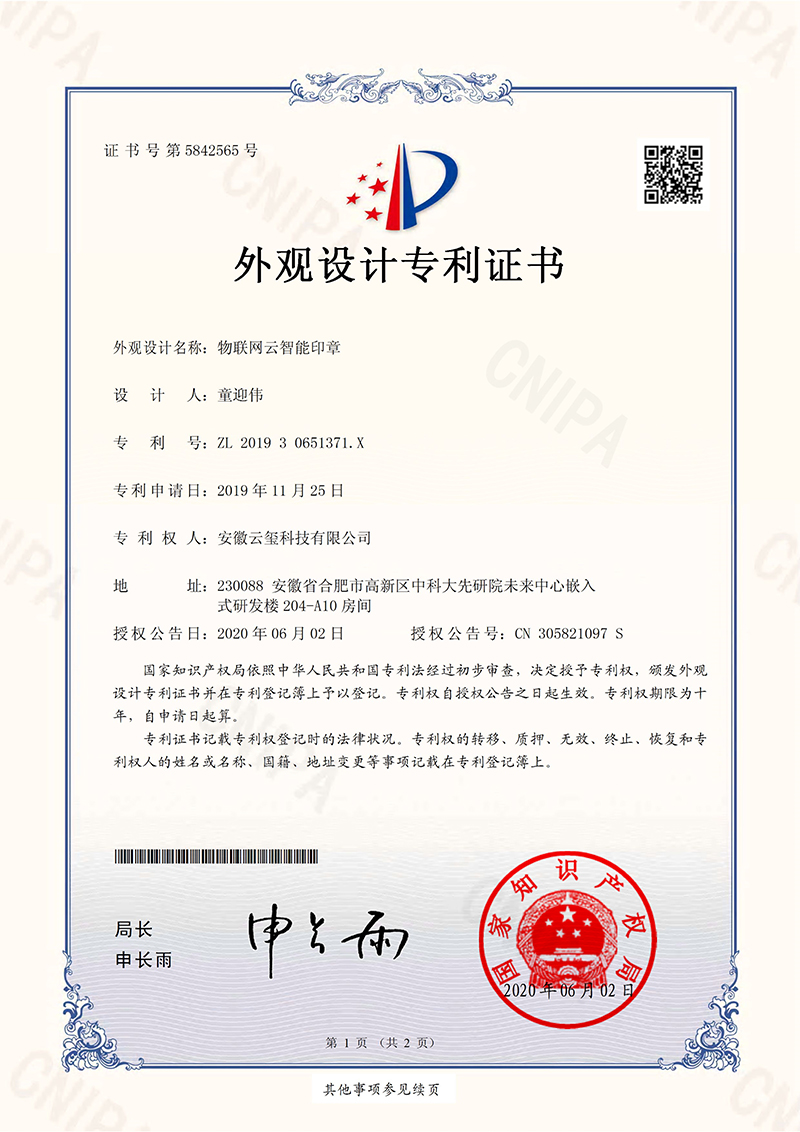 公司原創(chuàng)發(fā)明一體式智能印章技術,引領國內外新一代智能印簽創(chuàng)新變革。獲中日韓多項發(fā)明專利,徹底解決了實體印章和電子印簽管控的社會難題,獲國務院國資委全國央企熠星二等獎。公司聯合國家信息安全產品認證中心、公安部三所、信通院、中國印章協會等,主導起草了行業首個智能印章安全認證標準和智能印章產品標準,引領了智能印章行業發(fā)展。